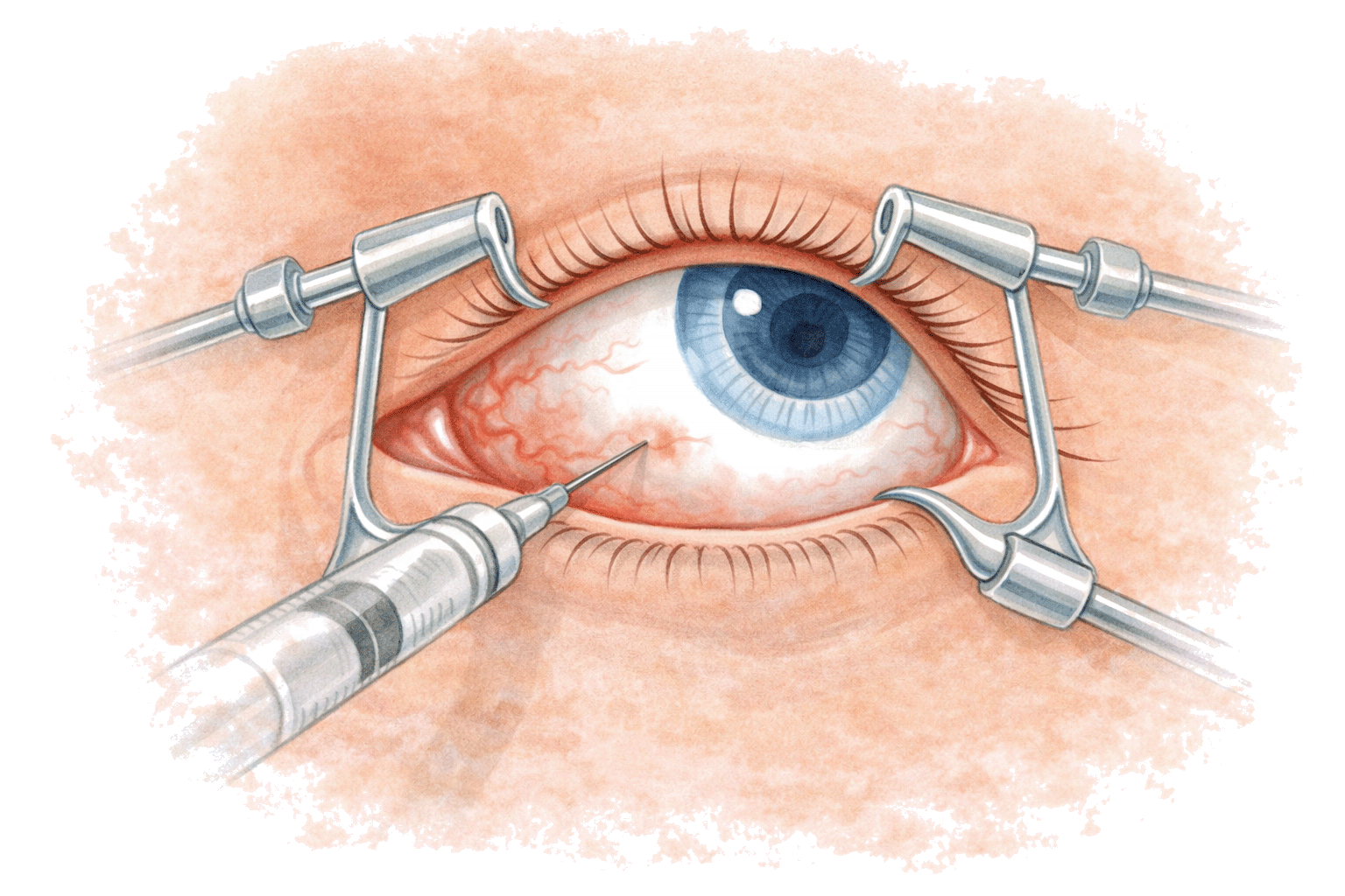 - Vor der Injektion werden zur Vorbeugung von Infektionen das Auge sowie der Bereich ums Auge desinfiziert.