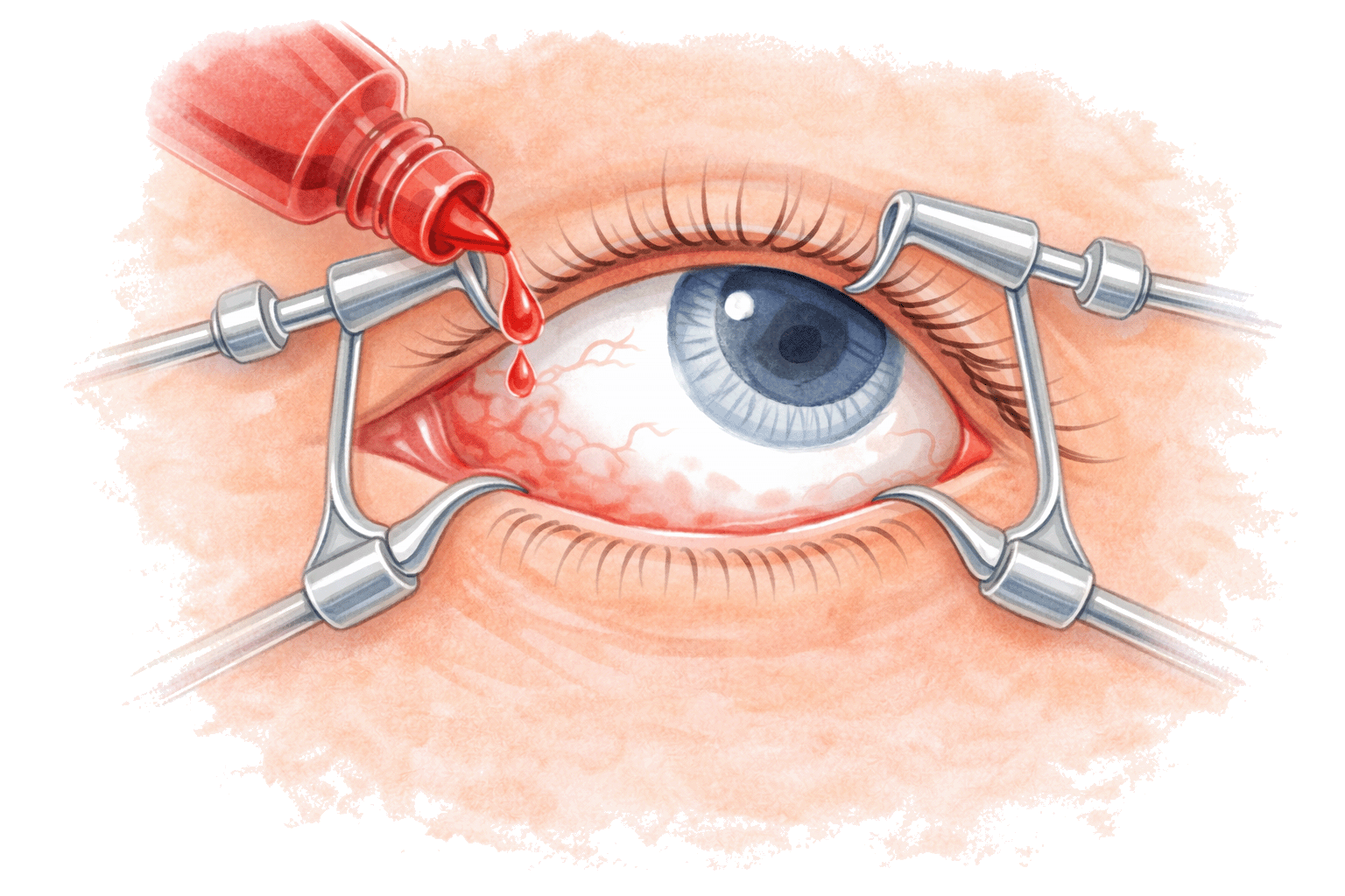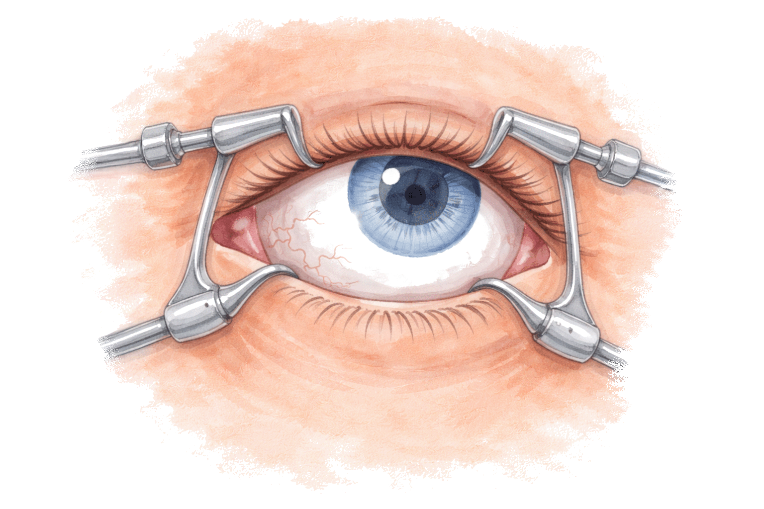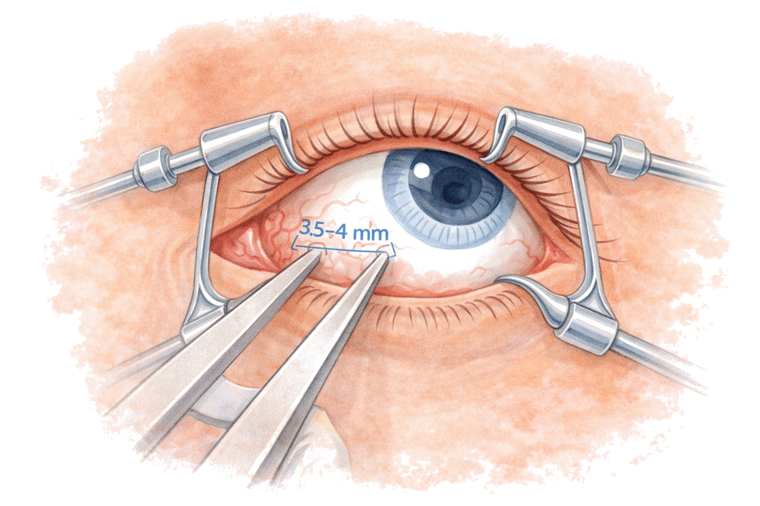 2. In diesem Schritt wird ein Lidspreizer angebracht, um das Auge während des Eingriffs offen zu halten.